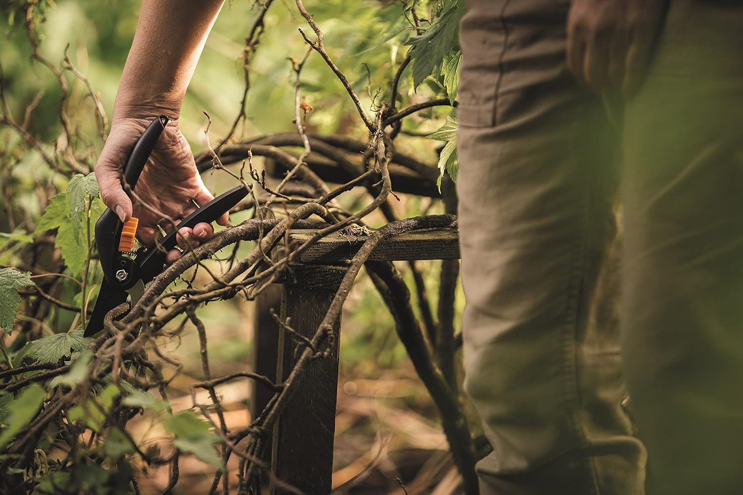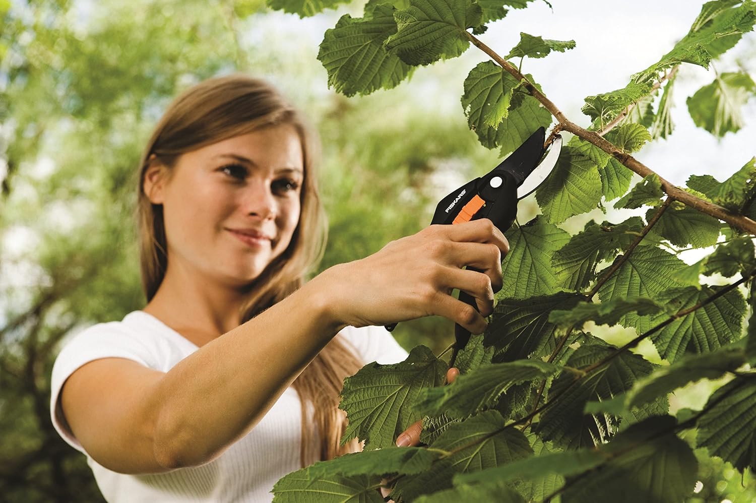 - Lieferumfang: 1x Fiskars SingleStep Bypass-Gartenschere P26, Länge: 20 cm, Gewicht: 200 Gramm, Material: Hochwertiger Stahl/Antihaftbeschichtet, Farbe: Schwarz/Orange, 1000567.